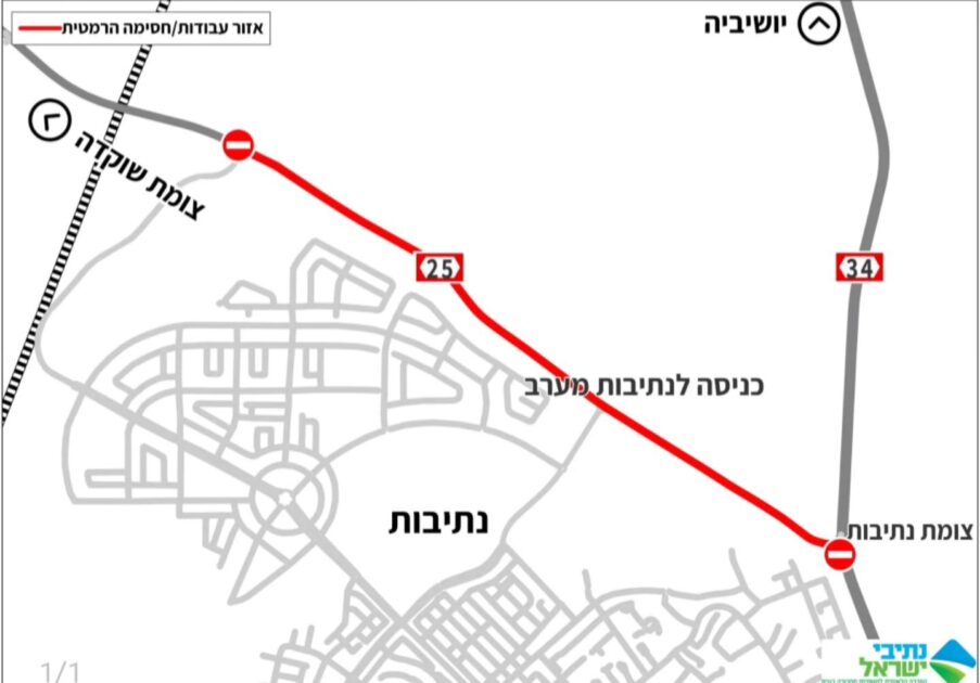 חסימה לילית בכביש 25: עבודות בין צומת תקומה לצומת נתיבות