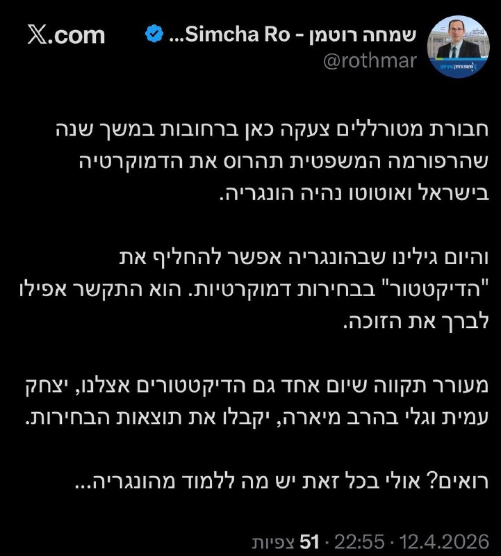 כמו כן, ההימור של האב והבן נתניהו, שהתערבו בבחירות בהונגריה, נכשל.נתניהו שלח ברכה מצולמת לויקטור אורבן כחודש בלבד לפני ה...